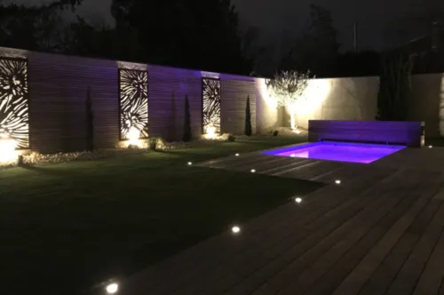 Que ça soit pour le côté pratique ou esthétique, Nous utilisons des luminaires 12V, pour une faible consommation et un aspect plus sécuritaire Nous vous proposons des spots, bornes, projecteurs, ruban LED, applique murale de la marque lightpro. Le tout gérer depuis votre smartphone ou avec détecteur de mouvement.